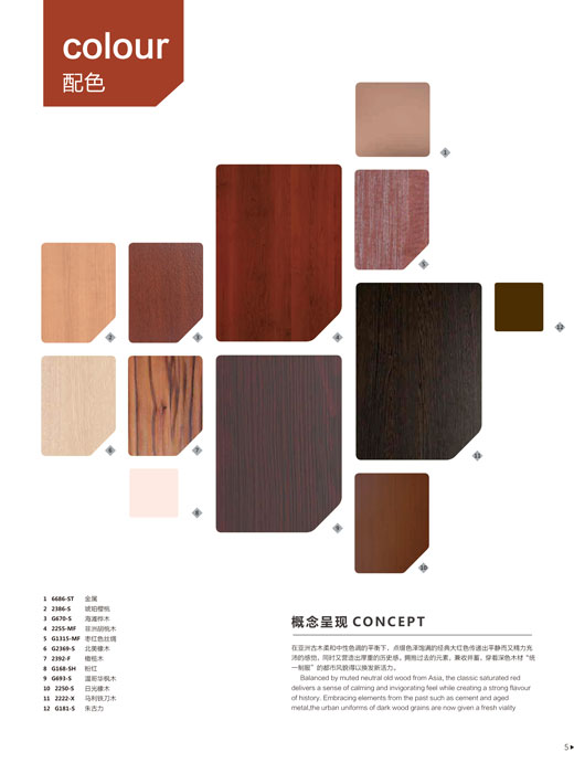格林雅在產(chǎn)品開發(fā)設(shè)計(jì)上充分的考慮到顧客的需求,以“追求經(jīng)典時(shí)尚、品味高雅、精益求精”的理念,不斷推陳出新,至2015年已經(jīng)有5000多種花色及55種表面處理。以富有想象力的色彩和新穎的表面處理展現(xiàn)著現(xiàn)代流行趨勢,成為設(shè)計(jì)大師們在創(chuàng)作是的靈感源泉;