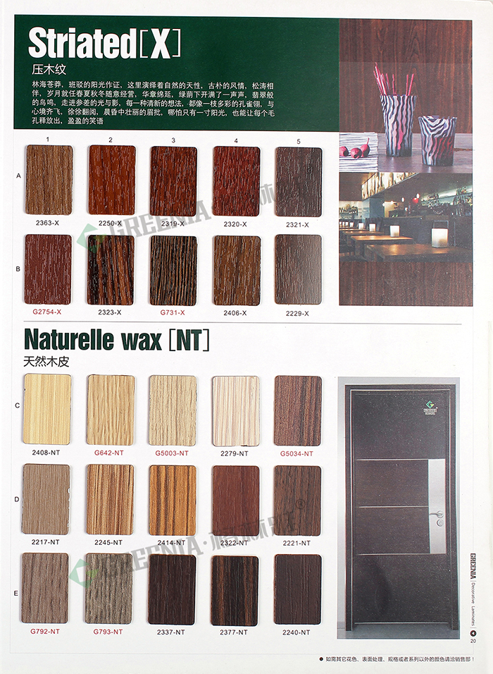 格林雅®天然木皮、壓木紋防火板樣冊